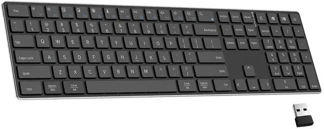 3 Modes Connect Up to Devices: TIETI metal keyboard offers two independent Bluetooth channels and one 2.4G wireless channel with dongle. The white keyboards support up to three devices simultaneously and easily switch between them by pressing Fn + Bluetooth button or Fn+ 2.4G dongle icon button.