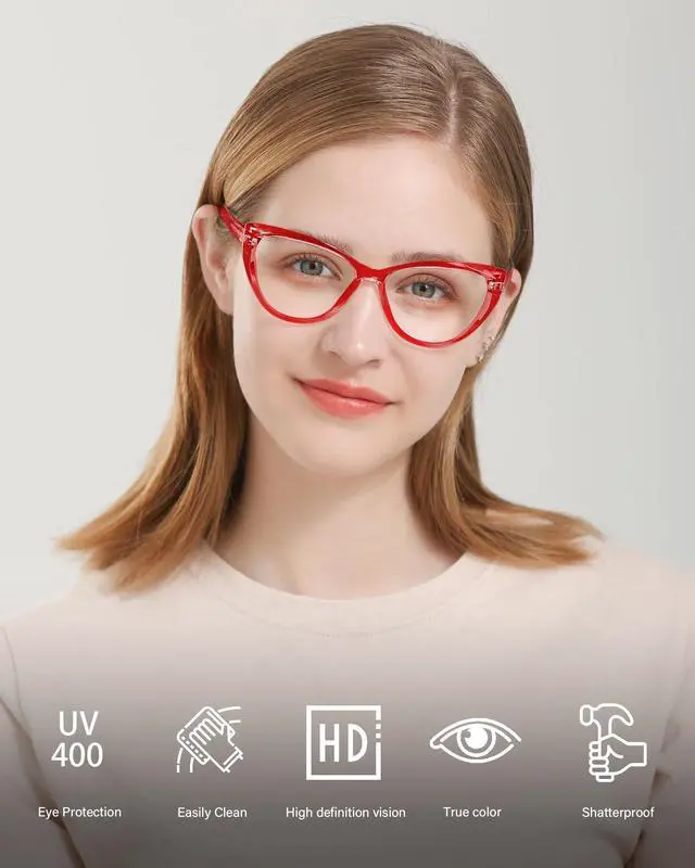 VINTAGE CAT EYE STYLINGThis style comes in three color options: classic black, crystal, and tortoise. Featuring spring hinges, it fits any face shape perfectly. As a non-prescription blue light blocking glasses, it's an ultimate choice for women.
