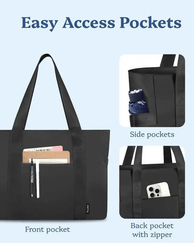 Prite Tote Bag for Women Weekender Bag with Laptop Compartment for Work Nurse Travel Gym (Black Large)