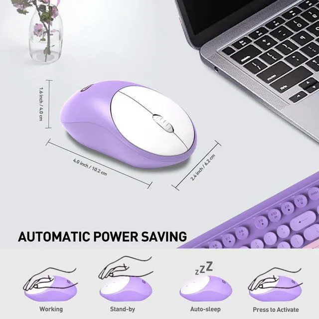 Durability Battery LifeBoth cute keyboard and mouse wireless turn into Power-save mode automatically, click any key or button to wake-up within seconds. Each of them runs on