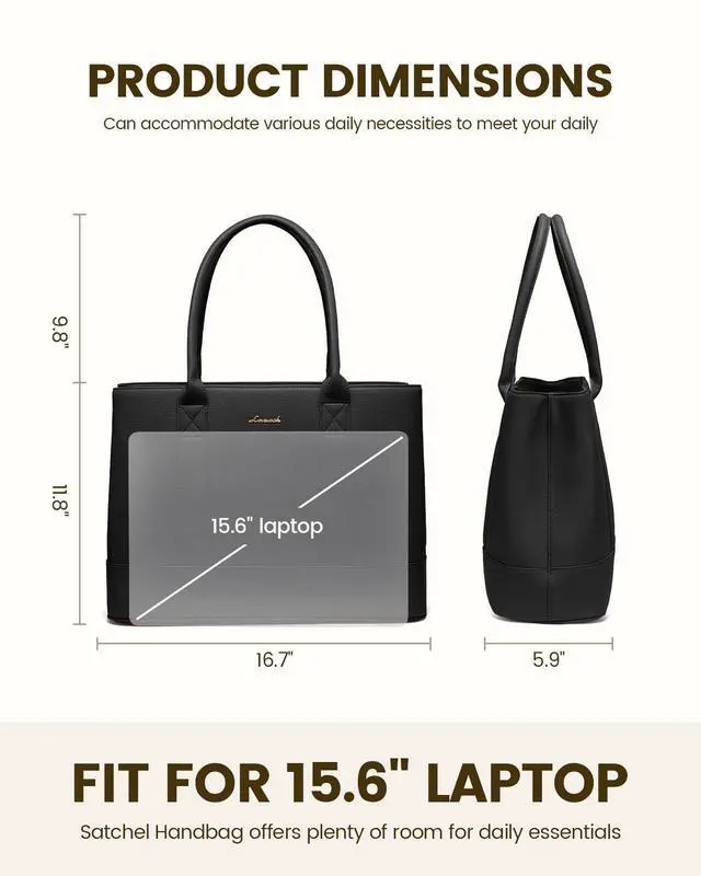 Spacious & Organized for Daily EssentialsWith ample interior space, this Work Tote Bag has 2 compartments, 6 pockets. It effortlessly accommodates folders, phones, laptop, cosmetics, power banks, and other daily essentials, making it perfect for organized commuting.