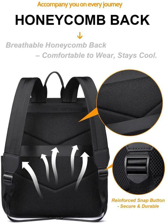 Durable & Water-Resistant Material Made from high-density coated fabric, this backpack is scratch-resistant and splash-proof (not fully waterproof), perfect for rainy commutes. The breathable mesh back panel and padded shoulder straps ensure comfort even during long wear.