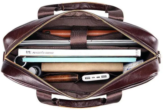 Elevate your professional style with this sophisticated 15.7 -inch leather briefcase messenger bag. Perfect for the modern professional, this versatile bag seamlessly transitions from office to business meetings with its classic satchel design. The spacious interior accommodates laptops up to 15.7 inches while providing ample room for documents, accessories, and daily essentials. Crafted with attention to detail, the shoulder strap and multiple carrying options ensure comfortable transport throughout your busy day. The timeless leather construction combines durability with refined aesthetics, making it an ideal choice for business executives, entrepreneurs, and anyone seeking a professional laptop bag.