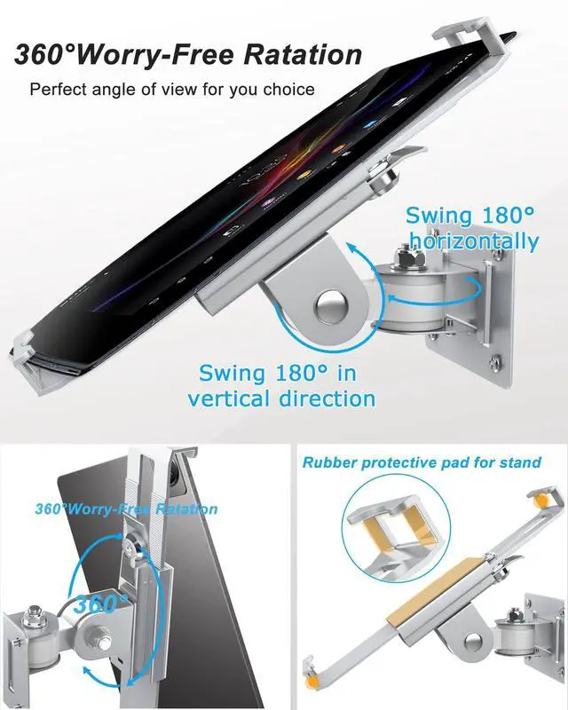 Anti-Theft for POS System Built with high quality heavy-duty aluminum bracket and metal base ensure the wobble-free mounting for your devices. Security and lockable wall mount holder keep your tablets protected all the time.
