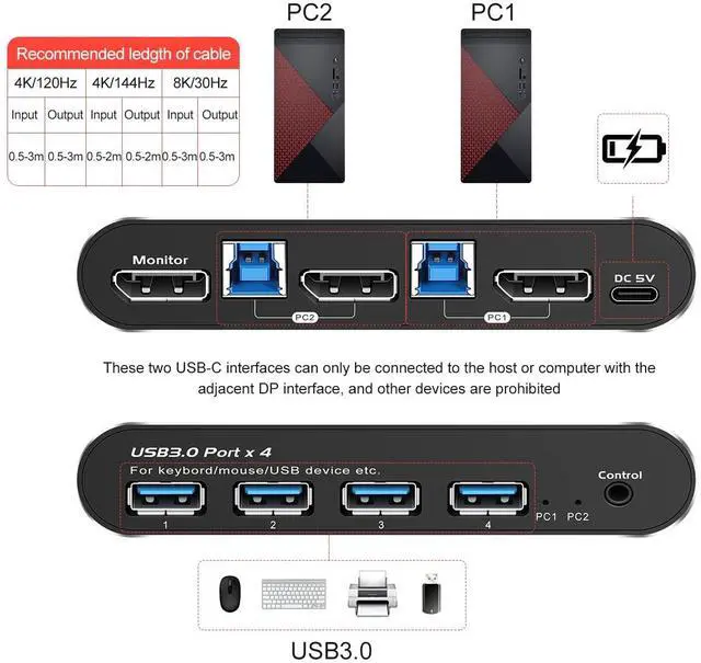 kvm Switch displayport 1 monitors 2 computers 1440p 165hz: Recommend resolution 5120x1440@60Hz, 5120x1440@75Hz,5120x1440@120Hz,5120x1440@144Hz,5120x1440@165Hz,3440x1440@75Hz,3440x1440@100Hz,3440x1440@144Hz,3440x1440@165Hz,3440x1440@175Hz,7680x4320@60Hz ,3840*2160@60Hz3840x2160@144hz3840x2160@175hz,3840x2160@240Hz ,2560*1440@165Hz,2560*1440@144Hz,3840x1600@144Hz,3840x1600@165Hz,3840*1620@144Hz,3440*1600@144Hz,3840*1080@240Hz,and the lower resolution is not recommended . Drive-free for Windows 10/7/2000/XP/Vista, Linux, Mac