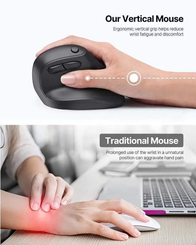 Reduce Wrist Pain from Long Hours-If you experience wrist discomfort from long working hours, this ergonomic mouse is perfect for you. It promotes a natural, upright wrist position and keeps your forearm relaxedhelping reduce strain and ease pain compared to a standard mouse