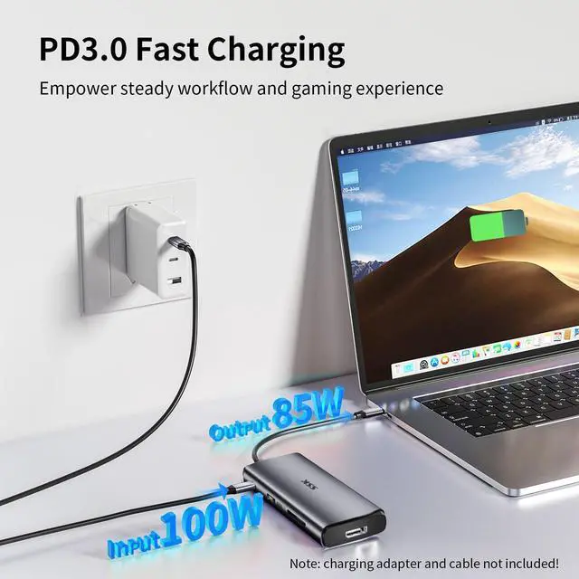 9 in 1: This USB C hub multiport adapter to solve the trouble of a single interface for thin and light laptops, one c port can be efficiently expanded to: 2 HDMI output,1 DisplayPort output,1 Type C PD 3.0 100W charging port, 2 USB 3.0 ports (5Gbps),1 USB 2.0 (480Mbps) ports and USB3.0 SD & TF card reader slots, all ports can work simultaneously. And no driver needed, plug and play