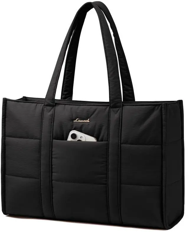 LOVEVOOK Laptop Bag for Women, Puffer Tote Bag for Work 17 Inch Large Computer Briefcase for Teacher Nurse, Quilted Lightweight Casual Shoulder Bag For Travel, Daily