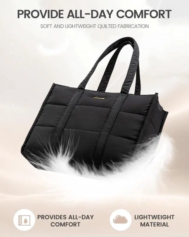 Lightening the Burden on Your Shoulders & HandsWeighing 0.99 LBS, the puffer tote bag is made from padded cotton for lightness, making it great for long time use