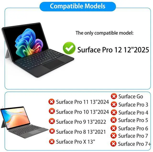 [Slim, Lightweight & Travel-Ready]: Designed for your Surface Pro 12 inch (2025), this Surface Pro keyboard has a scratch-resistant, ultra-thin build thats easy to toss in a bag(0.82lb).