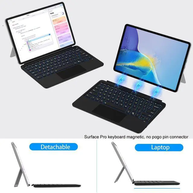 Foeytaody for Microsoft Surface Pro 12 inch (2025) Keyboard, Bluetooth Wireless Magnetic Keyboard with Multi-Touch Trackpad, Rechargeable Battery, 7-Color Backlit, Smart Sleep/Wake (Black)