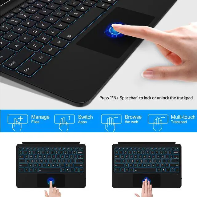 [Multi-Touch Trackpad &large Precision Touchpad]:12 gesturesswipe, tap, pinch, and scroll just like on a laptop! Spacious trackpad lets hands move freely for fast workflows. Top row of shortcut keys no FN combos needed! Touchpad ON/OFF: Fn + Space.