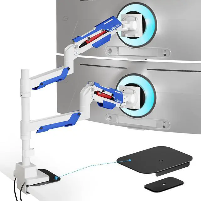 ARES WING Vertical Dual Monitor Mount & Steel Monitor Mount Reinforcement Plate for 24-57'' Ultrawide Screen