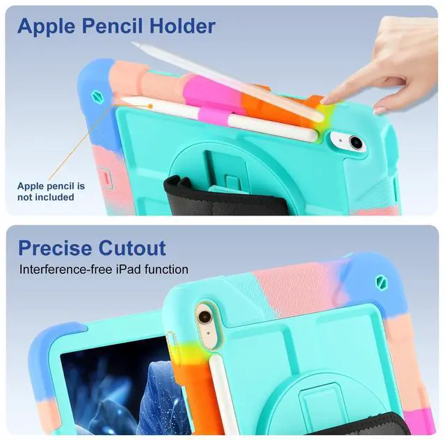 All-Round ProtectioniPad 10th Generation Case,Crafted from durable Silicone Outer Shell and Hard PC Back Cover, provides full-body protection and features a built-in screen protector to protect your iPad from accidental drops,bumps and shocks.Silicone stopper at the charging port keeps dust into.