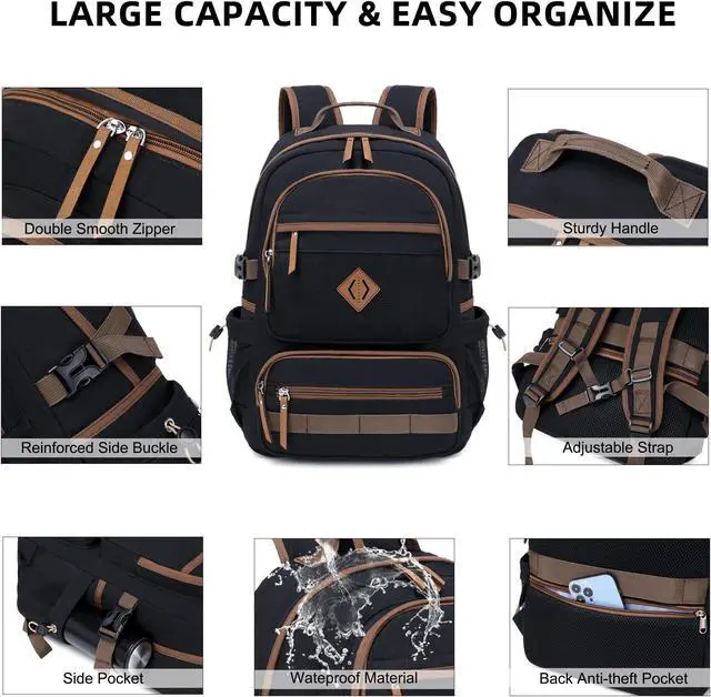 Waterproof Material &Smooth ZipperThe campus backpack is made of waterproof, ultra-lightweight, high density nylon fabric and soft polyester lining. The metal zippers closure are used by the premium quality zippers to ensure the long-lasting usage
