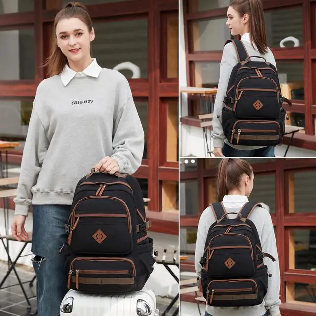 Size & DesignThe size of back pack is 12.2"x5.9"x18.5"(L*W*H), Weight:1.4 LB. The laptops bag with padded compartment sleeve fit for 13.3,15.6 ,16.1 inch tablet. This women book bag also along with genuine leather brand logo and zipper puller makes the bags more fashionable and unique