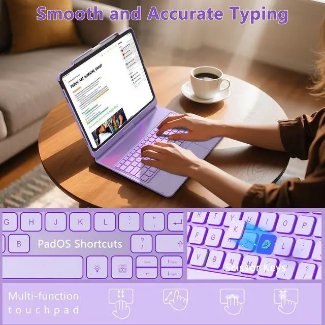 Quick Navigation Trackpad: TQQ for iPad Air 13 inch (M3) 2025 equipped with a smart touchpad that can accurately control and navigate, realize the combination of tablet and computer functions, and enjoy an excellent notebook experience. Control your iPad at multi-gesture. (like tap, swipe, scroll and switch apps), Edit documents, browse the web, and build presentations with unparalleled speed,