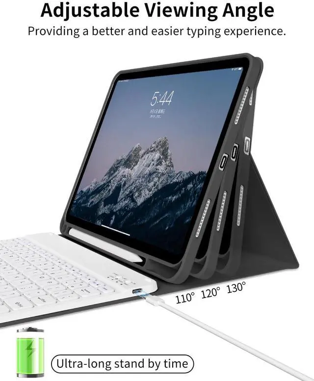 Detachable Bluetooth KeyboardDetachable Bluetooth keyboard with magnetic case, instantly becomes a portable laptop, easy to install and remove, built-in rechargeable battery, no need to replace the battery, Type-C charging cable It can be fully charged in 2 hours, work for at least 230 hours, stand by for 90 days, making it more convenient to use