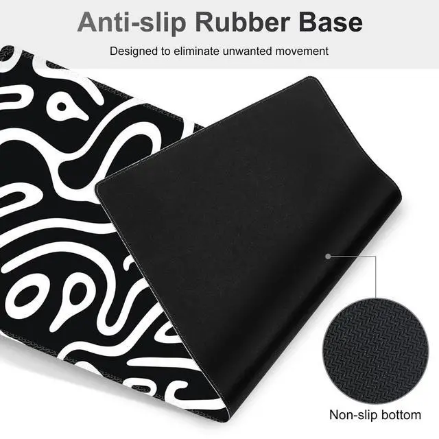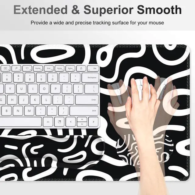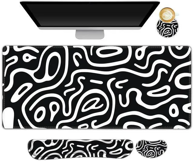 NXZGO Large Gaming Mouse Pad Set, 4 in 1 Extended Keyboard Desk Mat with Wrist Rest, Computer Game Mousepad, Non-Slip Desk Pad Easy Typing Pain Relief for Home Office I Black White Topographic