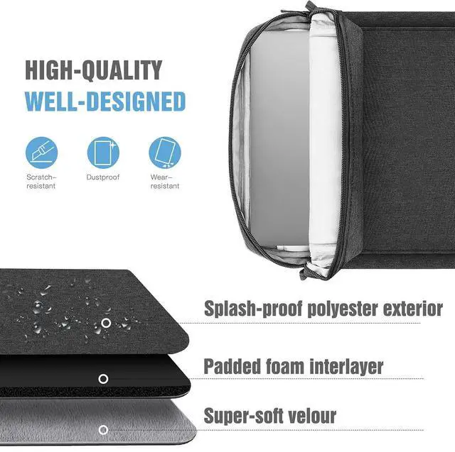 Waterproof & Durable Materials - This protective sleeve is made of premium materials with fine workmanship, the water-repellent exterior can protect against fluids and dust, and the padded foam interlayer and soft fleece interior lining are soft and safe for your device, keeping your device from being accidental bumps and scratched.