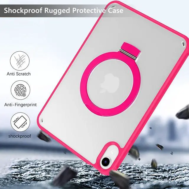 GUAGUA Compatible with iPad Mini 7 (A17 Pro) 2024 / Mini 6 8.3 Inch 2021 Case with Kickstand Anti-Drop Durable High Impact Full-Body Shockproof Protective Cover Translucent Matte Hot Pink