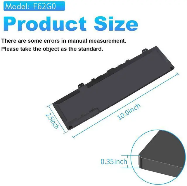 20 years of expert production: Our F62G0 Laptop Battery offers compatibility with the original F62G0 Dell Battery, features American high-end battery chips, and has a low-power design for extended battery life. It includes built-in circuit protection for steady performance and provides protections against overcharging, over-discharging, and short-circuiting