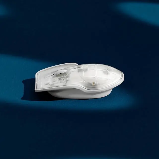 LUNAR ARTEFACTS Ambidextrous Rechargeable Bluetooth Wireless Computer Mouse White Translucent with White Powder Coated Aluminum, USB-C
