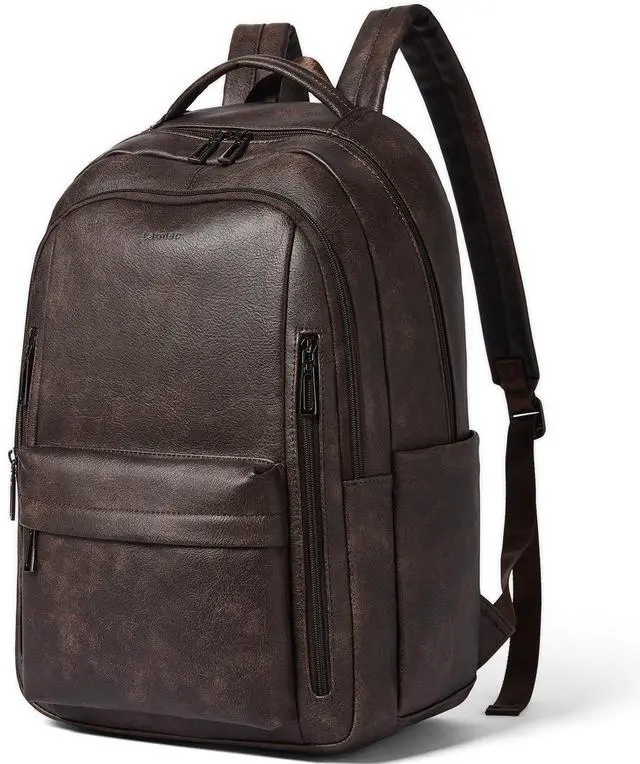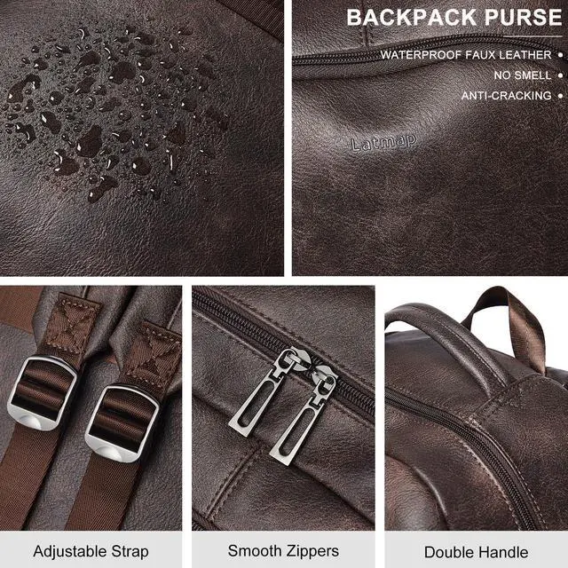 LATMAP 30L Backpack Purse for Women Men Laptop Backpack, Faux Leather Travel Work Backpack Teacher Bookbag fits 15.6" Laptop, Coffee