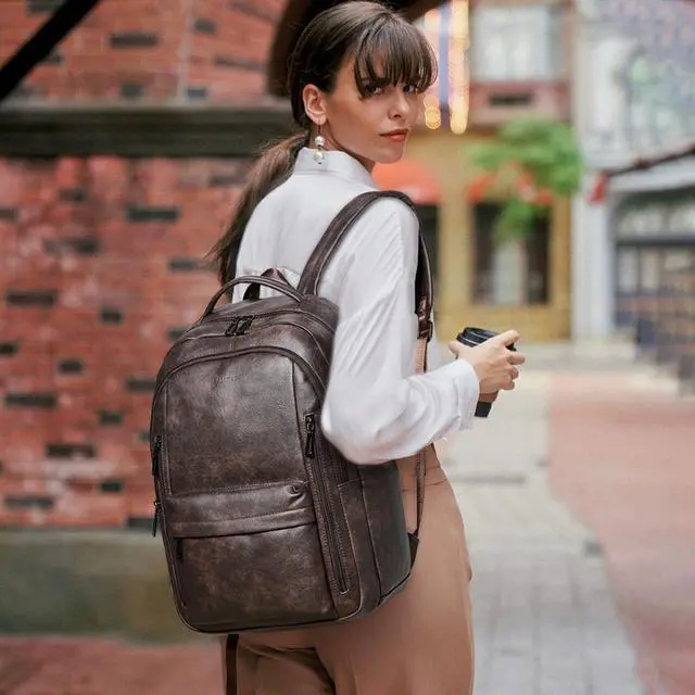 EASY TO CARRY: Travel light and stress-free. Adjustable shoulder straps distribute weight evenly and reduce fatigue during long walks or crowded commutes. Crafted from sturdy and lightweight PU leather that maintains its shape even when fully packed. The reinforced double top