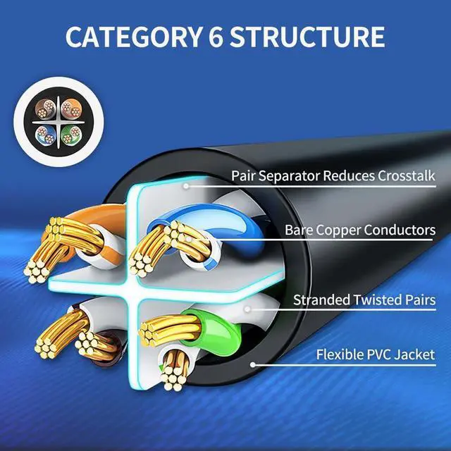 Cat 6 Performance: TIA/EIA-568C.2 compliant and UL listed, conductors are applied 24 AWG stranded copper wire provides up to Cat6 10-Gigabit Ethernet, backward compatible with 10Base-T, 100base-tx(fast Ethernet) and 1000Base-T (Gigabit Ethernet) for 8P8C cat5e and Cat5 cable.