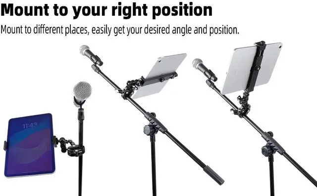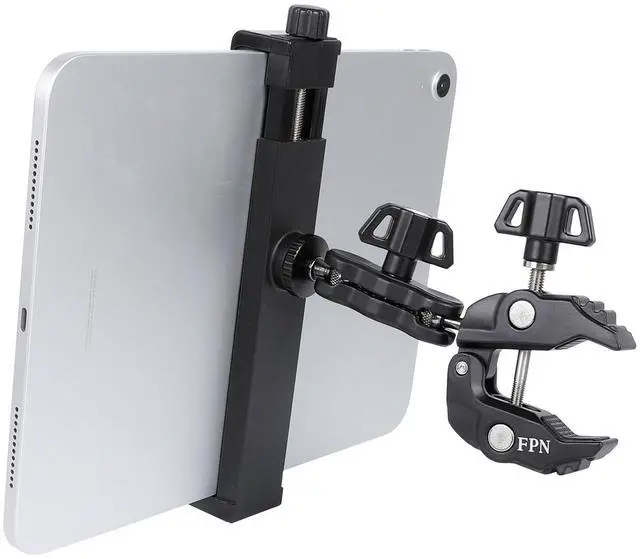 **Secure Tablet Clamp**: The ABS tablet clamp includes rubber padding on both ends and a reliable spiral knob mechanism to keep your device safe in any position. Exceeding standard spring clamp specifications, it offers a powerful grip that prevents slipping or falling.