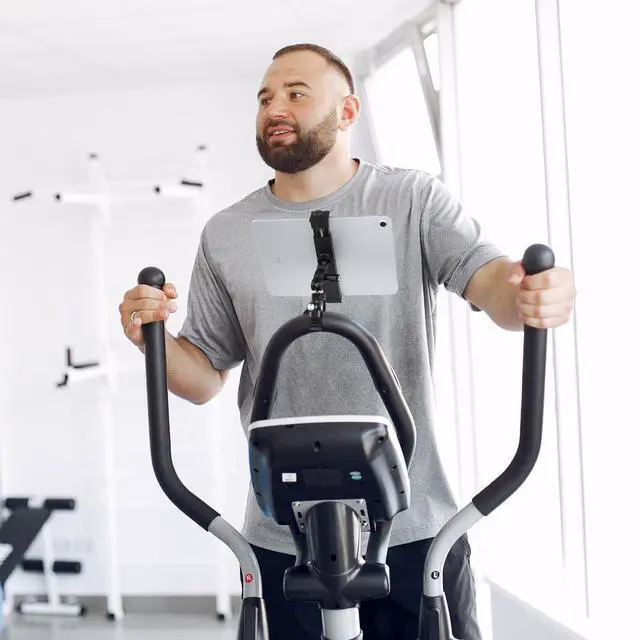 **Versatile Super Clamp**: Constructed from robust aluminum alloy, this tablet mount securely attaches to cylindrical objects with diameters ranging from 0.5" to 2". Perfect for use with baby strollers, treadmills, ellipticals, spin bikes, shopping carts, wheelchairs, music stands, and stationary bikes.
