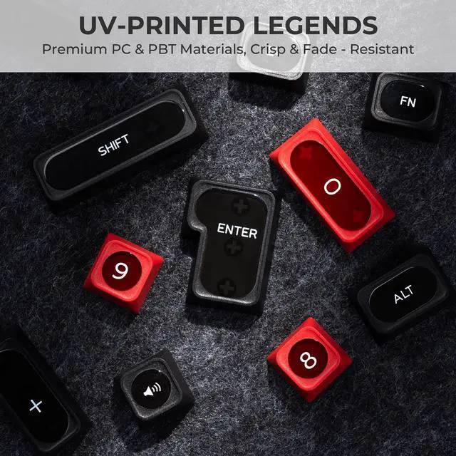 Dual-Layer PC+PBT Material Combines the scratch-resistant durability of PBT with the translucent elegance of polycarbonate (PC). Matte texture ensures a premium grip, while the material resists shine and discoloration over time.