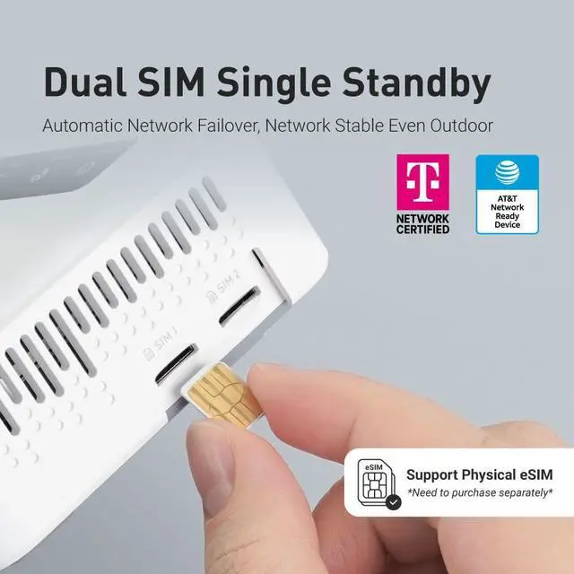 Dual-SIM with Single StandbyDual-SIM flexibility for selecting the stronger and faster ISP connection, AT&T & T-Mobile certificated while supporting Network Failover and the option to configure Failover priorities among multiple connection methods.