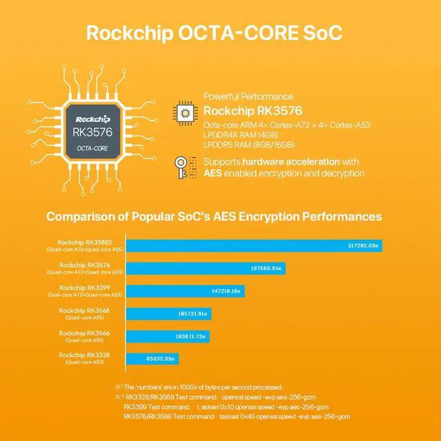 [Wireless Mobile Mini Travel Router] The NanoPi M5 mini router is an open-sourced mini smart gateway device, designed and developed by FriendlyElec. It is based on Rockchip RK3576 SoC, with 32-bits LPDDR4X/LPDDR5 RAM and UFS 2.0 storage(optional). The RK3576 is an 8-core 64-bit processor featuring a powerful architecture with 4x ARM Cortex-A72 cores and 4x ARM Cortex-A53 cores. It is equipped with an ARM Mali G52 MC3 GPU and 6 TOPS NPU.