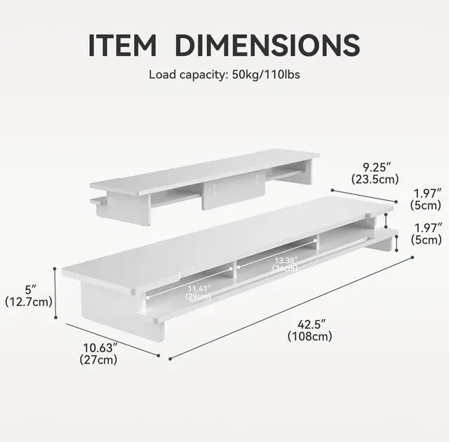 Built to Last with Premium Materials Crafted from high-density MDF panel, this monitor riser offers a sleek, modern look while supporting up to 110 lbsideal for dual monitors, all-in-one PCs, or heavy displays