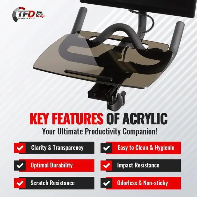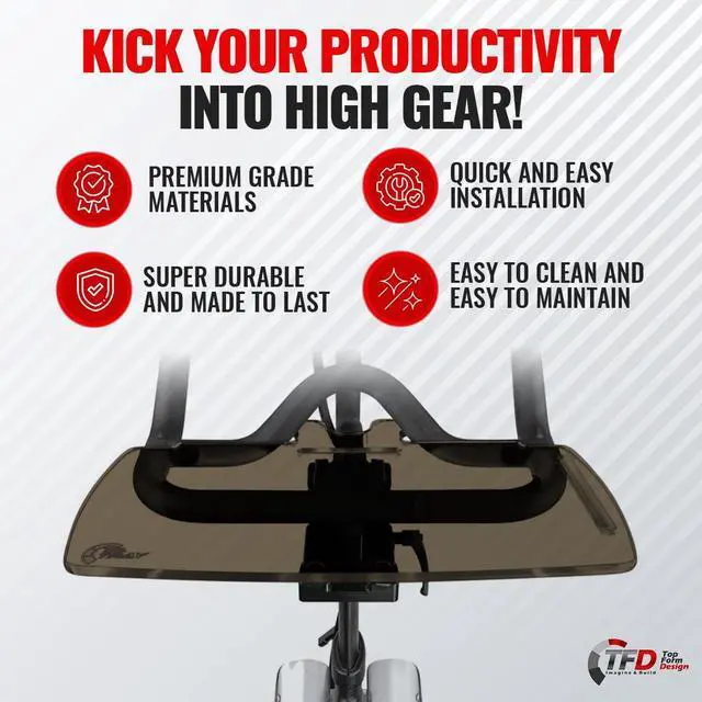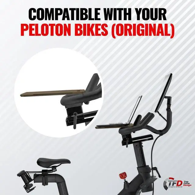 Are you looking to maximize your productivity during your Peloton workouts? Look no further than The Tray V2 from Top Form Design! This must-have accessory is compatible with Peloton Bikes (Original Models) and seamlessly turns your Peloton into a functional dual-purpose workstation. With Tray Accessories to keep your work from sliding while you ride, this supportive acrylic tray fits onto your handlebars and is the perfect laptop tray or holder for your tablet, phone, books, and more. And unlike universal exercise bike desk or computer stand attachments, the patent-pending Tray V2 is specifically designed to fit your Peloton bike and mount on the handlebars in seconds flat without hardware.