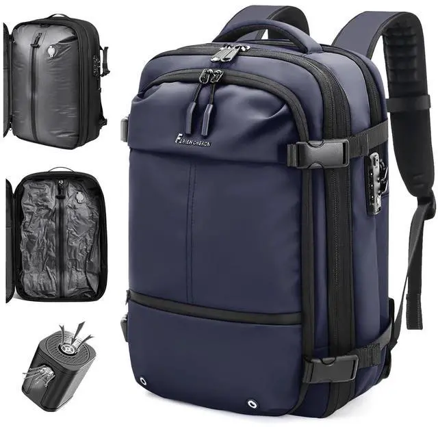 FABIEN CHERON Travel Backpack with Vacuum System,60L Expandable Vacuum Backpack Travel with TSA Lock,17.3 inch Laptop Backpacks Vacpack Backpacks with Vacuum(Blue,External Air Pump)