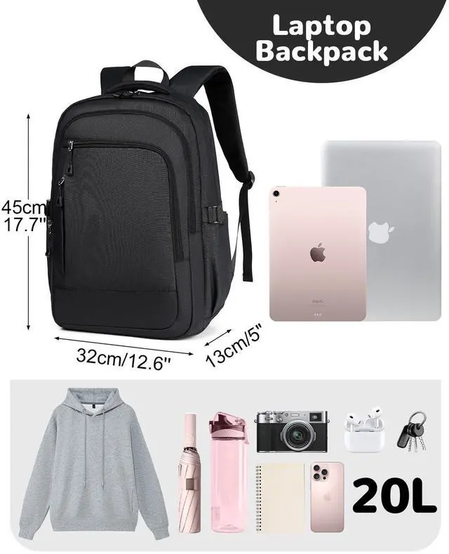 Outplea 15.6" Laptop Backpack for Men, 20L Small Stylish Travel Backpack with Anti-theft Pocket, Black