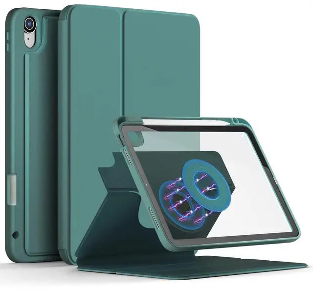 DINGGUAGUA Case for iPad 10th Generation 10.9 inch 2022 ipad A16 with Built-in Pencil Holder Shockproof Cover,with Detachable Clear Transparent Back Shell A2696 A2757 Auto Wake/Sleep,Dark Green