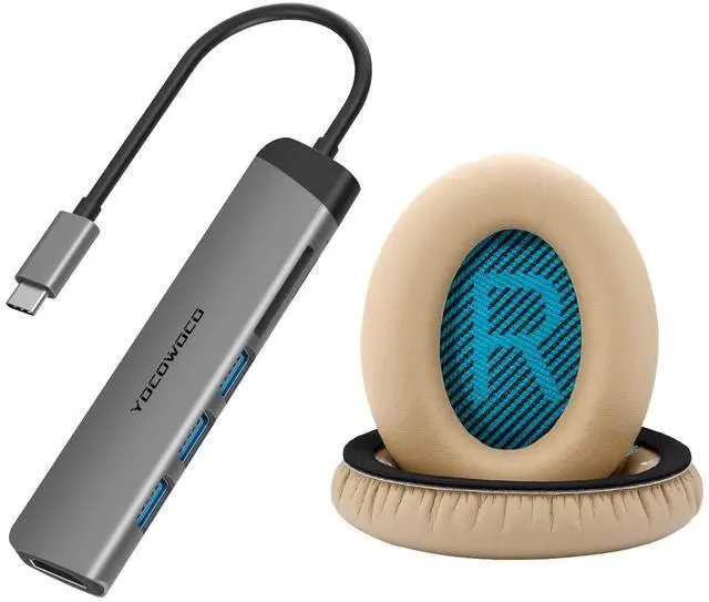 Package Includes: 1 USB C Hub 6-in-1 multiport adapter (Gray) and 1 pair ear pads replacement fit Bose QC25 QC15 QC2 QC35/ Ae2 Ae2i Ae2w SoundTrue and SoundLink (Khaki)
