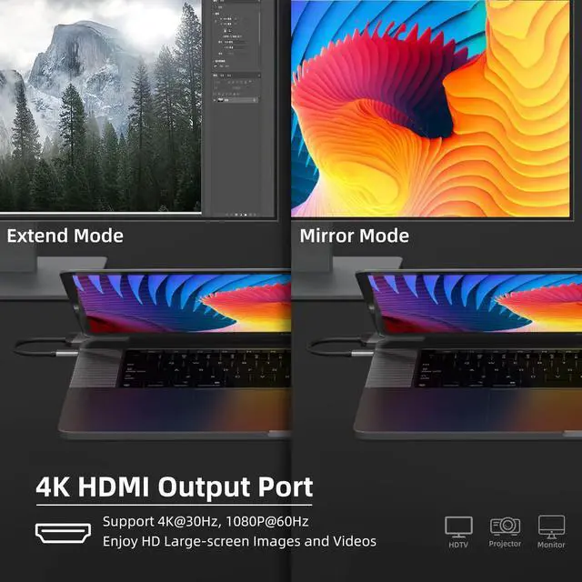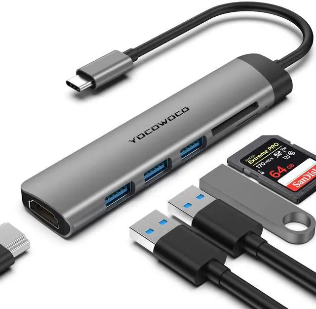 6-in-1 USB C Hub: The combined USB C Adapter meets necessary needs. 3*USB 3.0 ports, 1*4K@30hz HDMI port, SD/ TF card adapter. No software and drivers are required, plug and play.