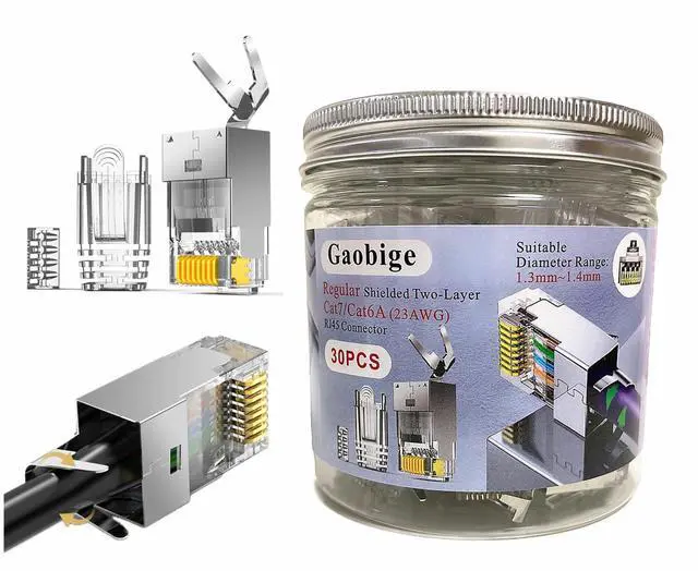 Package Included: 30 PCS regular Cat7 Cat6A rj45 connectors, 30PCS RJ45 strain relief boots (Not Pass Through RJ45 Connectors), 30 PCS fixed buckles
