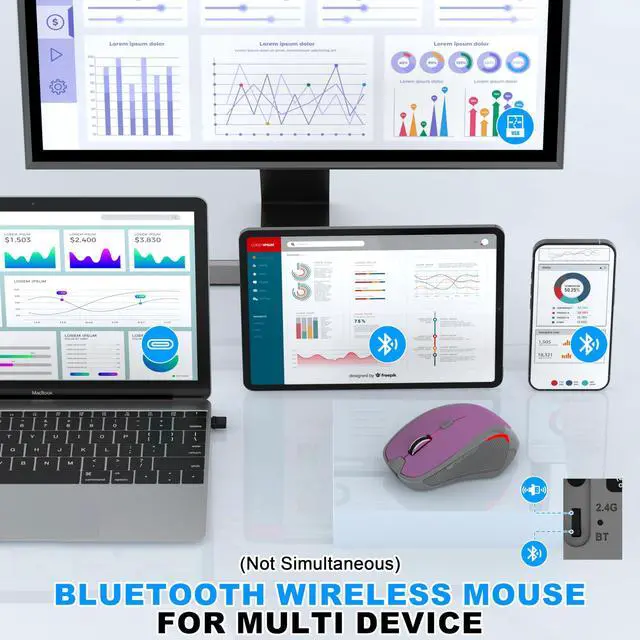 2025 Newly Upgraded Wireless Computer Mouse Wireless mouse switch seamlessly between Bluetooth 5.2/3.0 and 2.4G USB-C/USB-A modes to connect all your devices effortlessly. Reliable plug-and-play connection ensures stable performance up to 33 feet, perfect for office and home use. Includes a USB-A/USB-C dual interface adapter for modern devices, supporting instant, lag-free operation on laptops, desktops, and tablets
