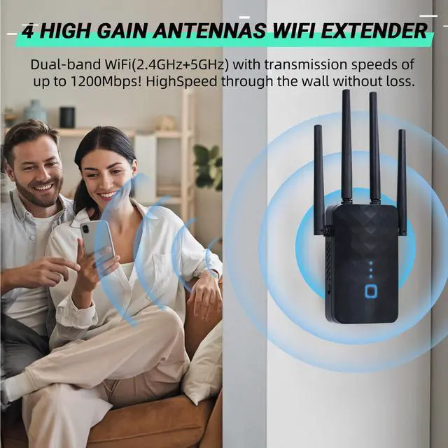 AC1200Mbps Dual Band: This Wi-Fi extender utilizes dual-band technology, delivering transmission speeds of up to 300Mbps on the 2.4GHz band and up to 867Mbps on the 5GHz band. Enjoy consistently smoother and more reliable streaming, gaming, downloading, and other services.