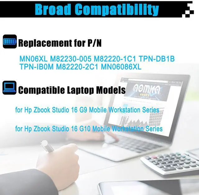 AOMKA MN06XL M82230-005 Laptop Battery Replacement for HP Zbook Studio 16 G9 Zbook Studio 16 G10 Mobile Workstation Series M82220-1C1 TPN-DB1B TPN-IB0M M82220-2C1 MN06086XL 86Wh 7130mAh 11.58V