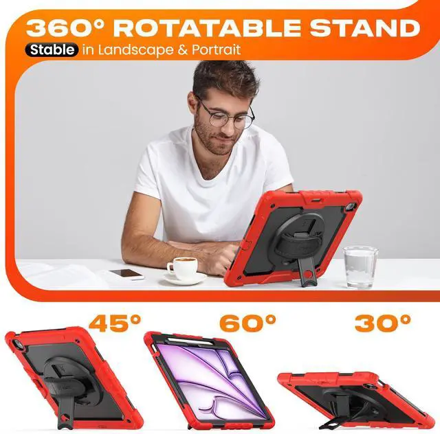 [Versatility Stand & Pencil Holder] With 360° rotating adjustable kickstand stable at multi-angles, case for iPad Air 13 inch M3 M2 for viewing, typing or movie watching; With pencil holder easy storage for note-taking, case for iPad 13 Air case suited for classes/meetings, works or play with-kid