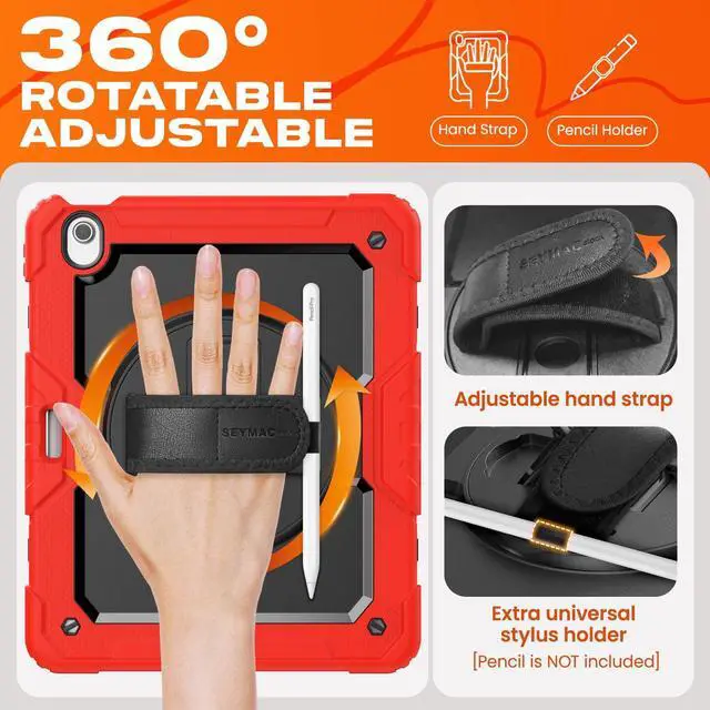 SEYMAC stock for iPad Air 13 inch Protective Case M3 2025/ M2 2024, Heavy Duty Case with Screen Protector, Pencil Holder, Rotating Stand, Hand Strap, Shoulder Strap, Ren