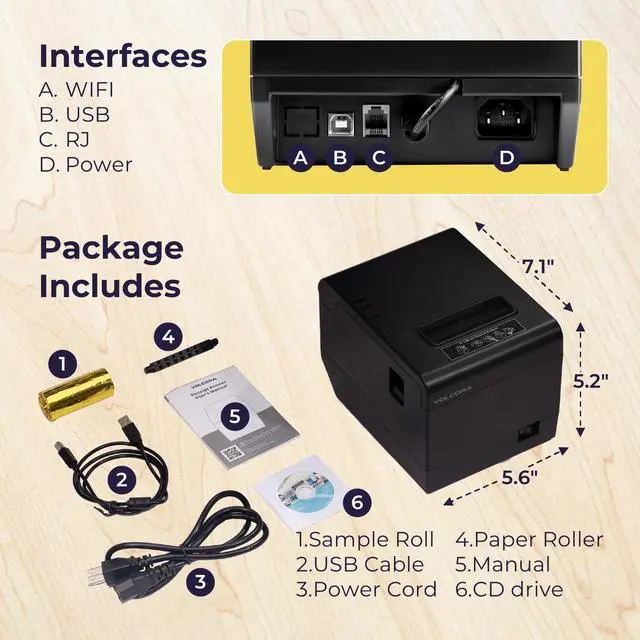 USB & Ethernet Interface: The receipt printer has USB and Ethernet interfaces, as well as