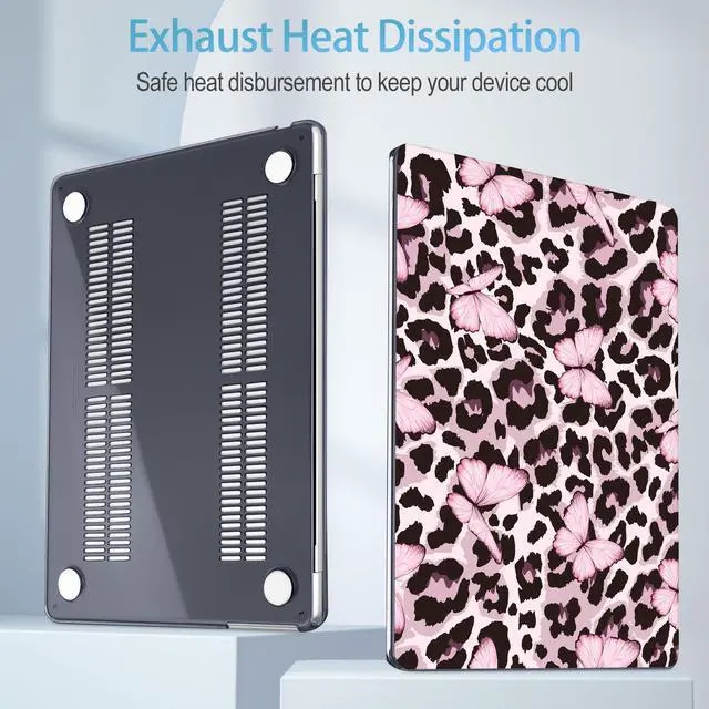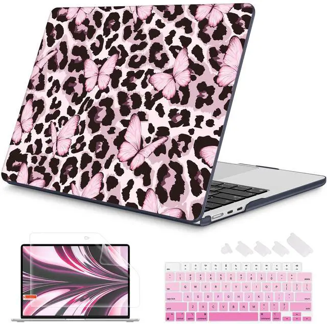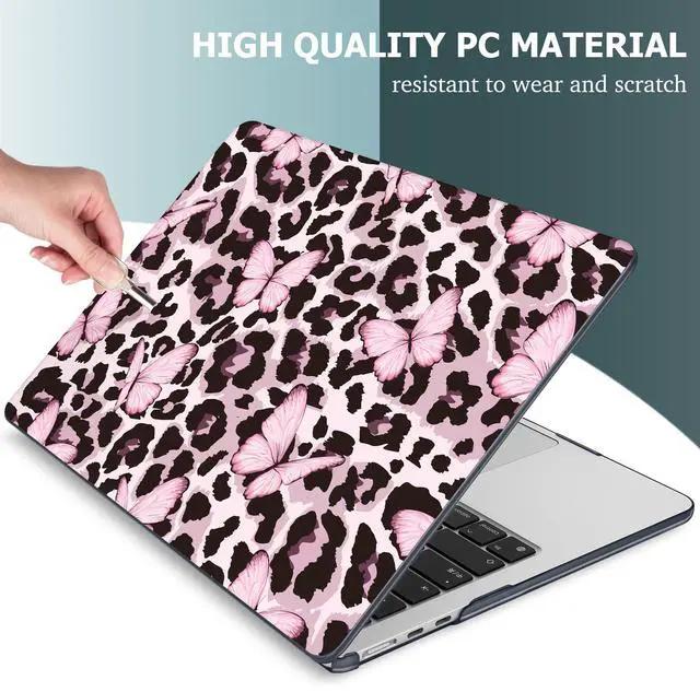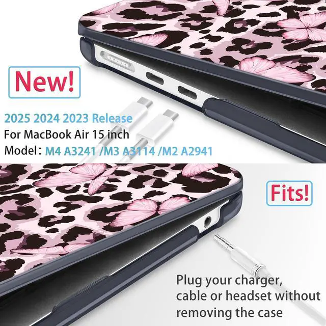 Mektron Designed for 2025/2024/2023 MacBook Air 15 INCH M4 A3241 /M3 A3114 /M2 A2941 Case, Printed Plastic Hard Shell Cover with 15.3" Liquid Retina Display Touch ID, Leopard Pink Butterfly